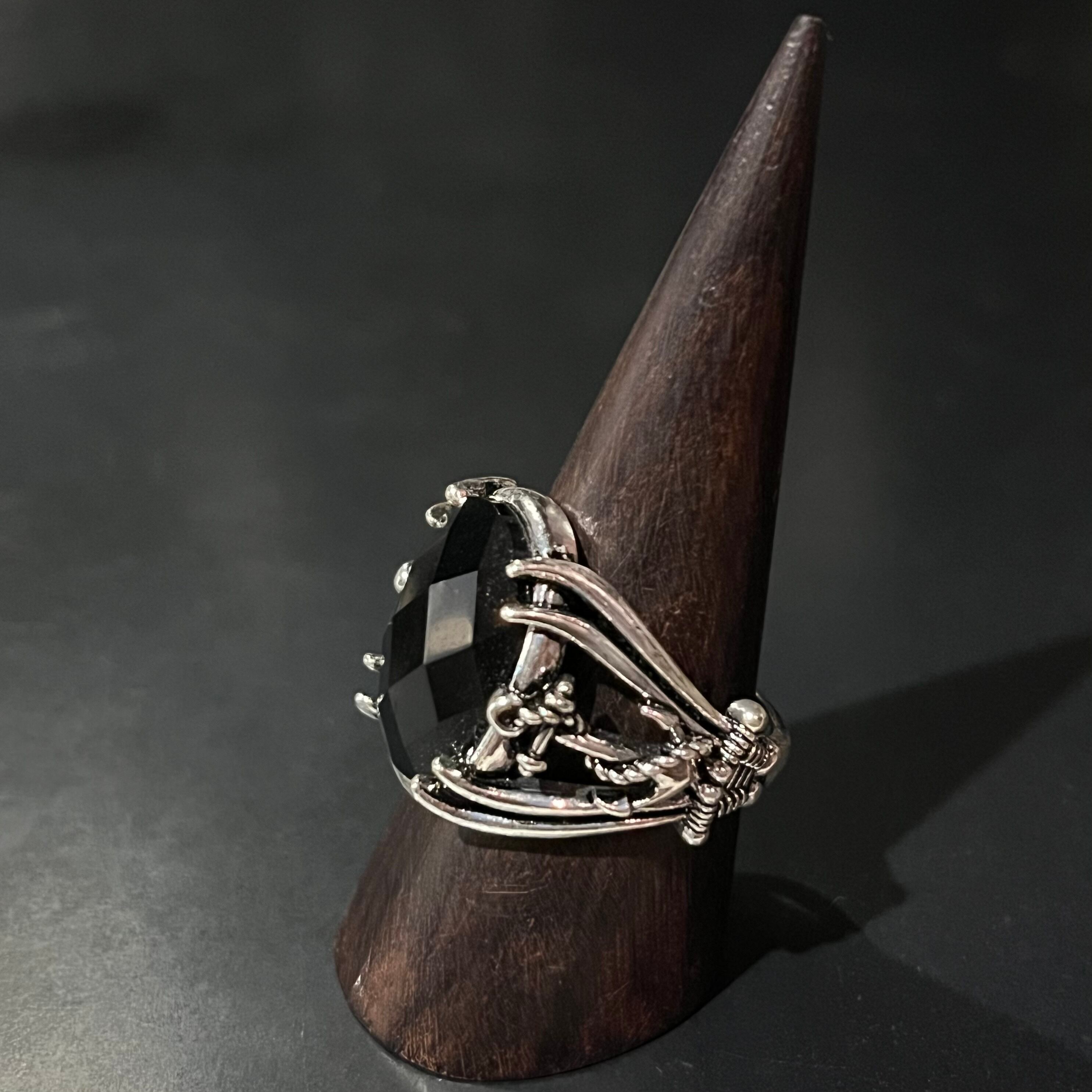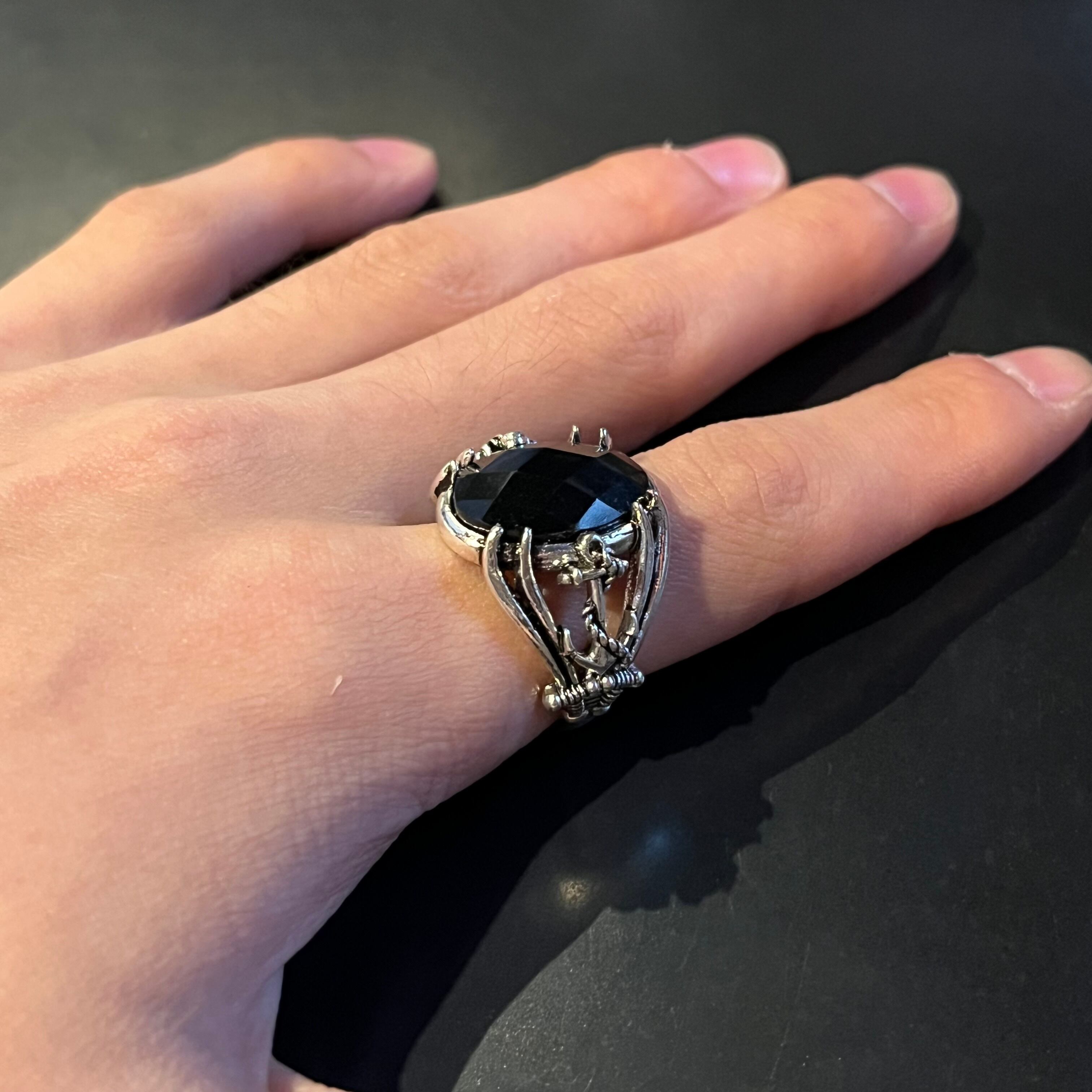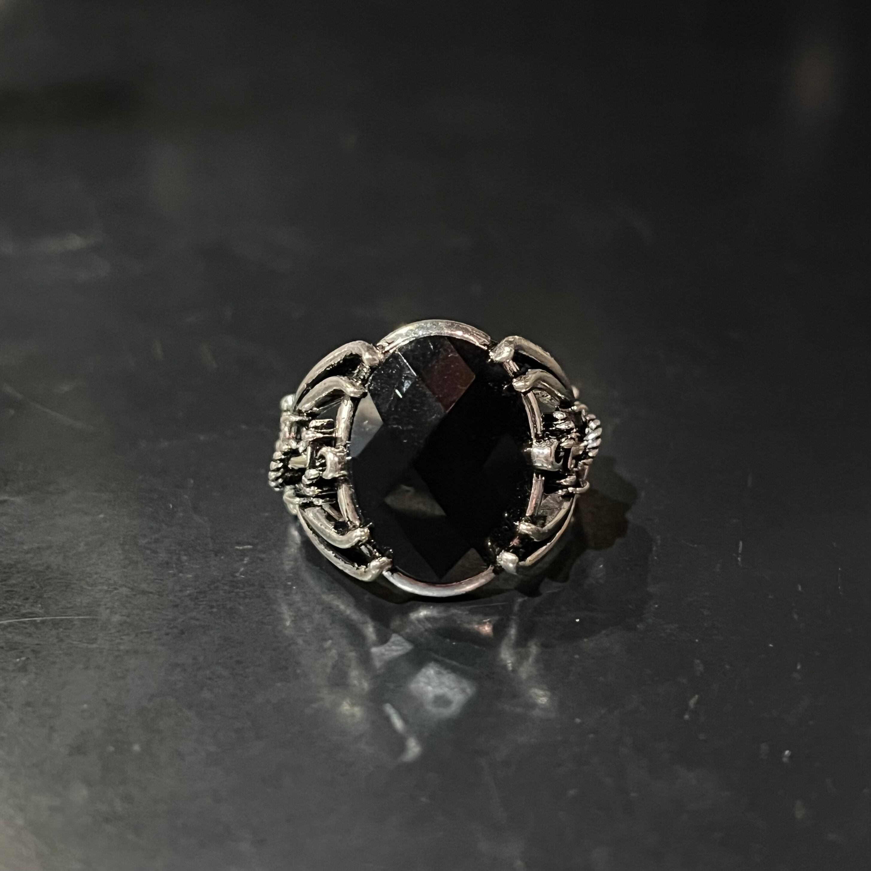 Vintage Black Stone Glitter Gothic Design Ring