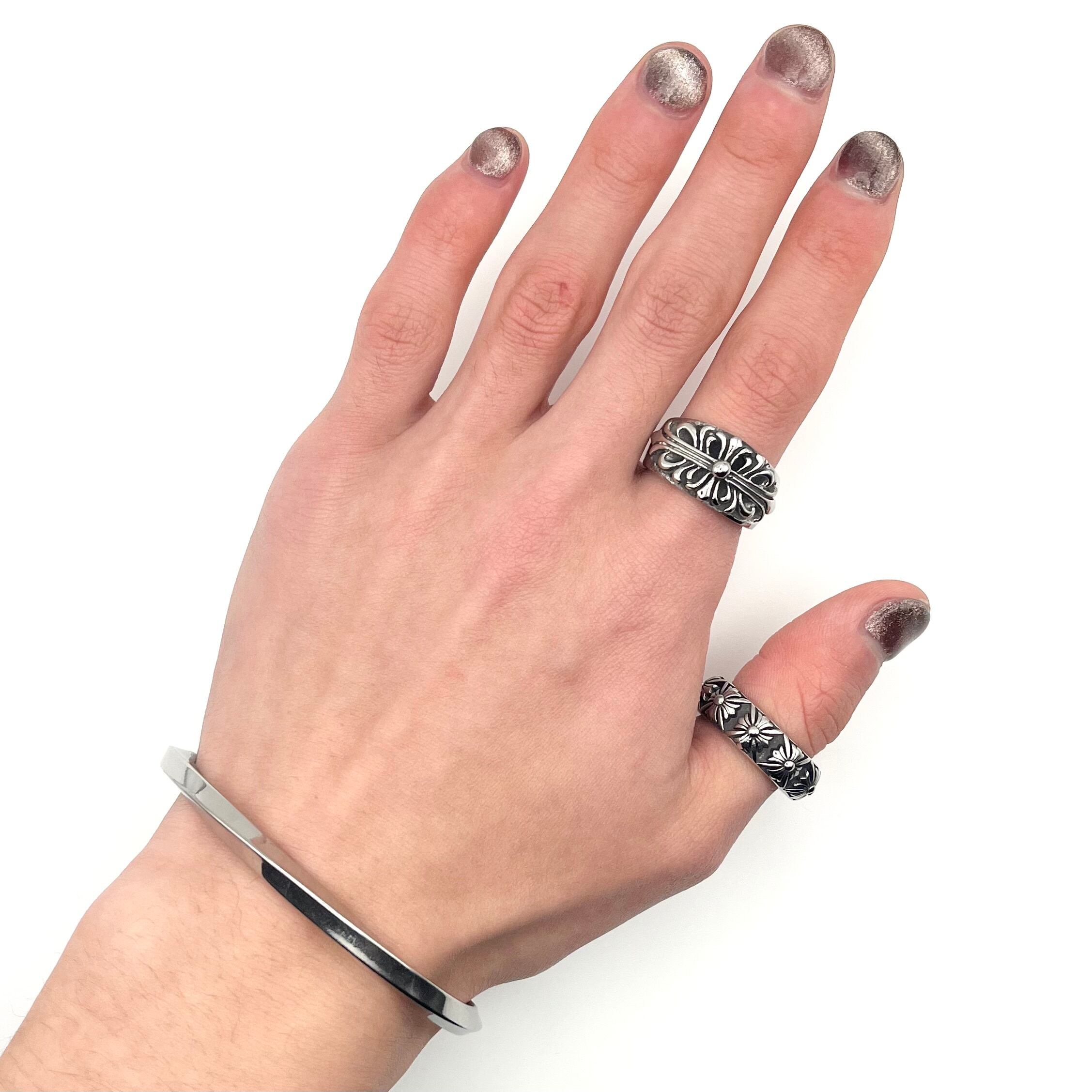 ◼︎Size:手首周り15㎝で、程よくゆとりを持って着用できる程度(開きのある作りですので、ほとんどの方が着用可能です。)