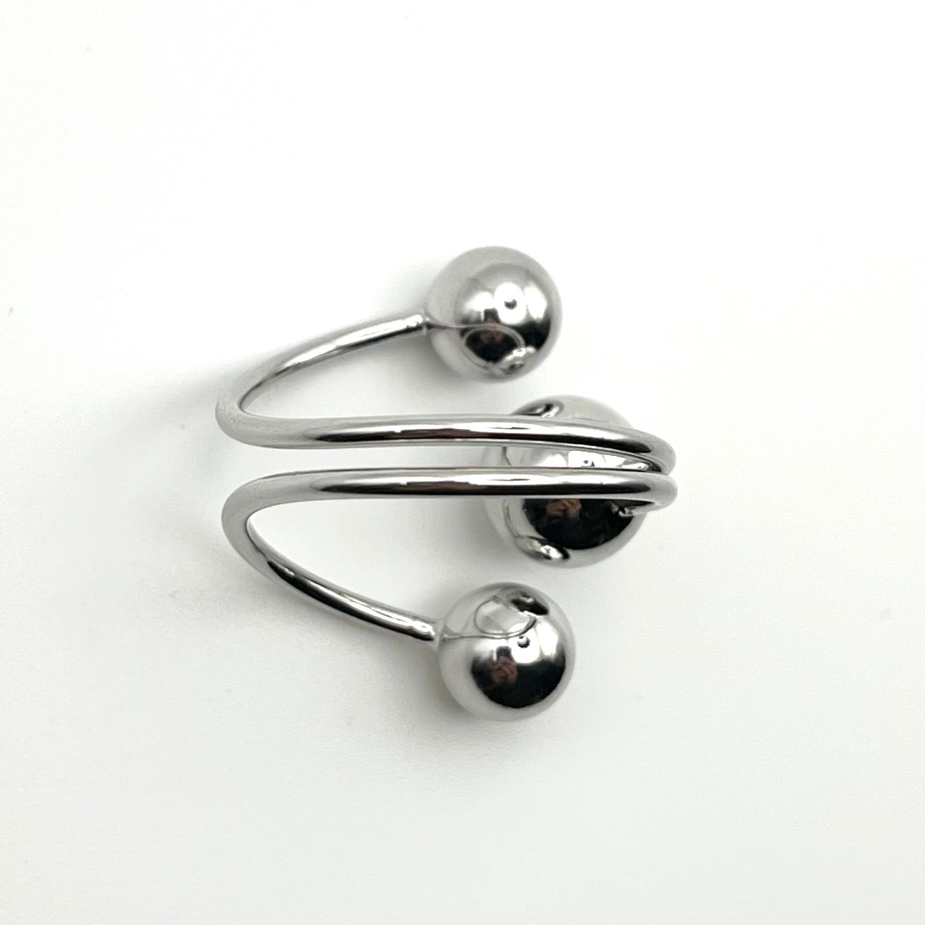 Triple Ball Motif Modern Spiral Design Ring