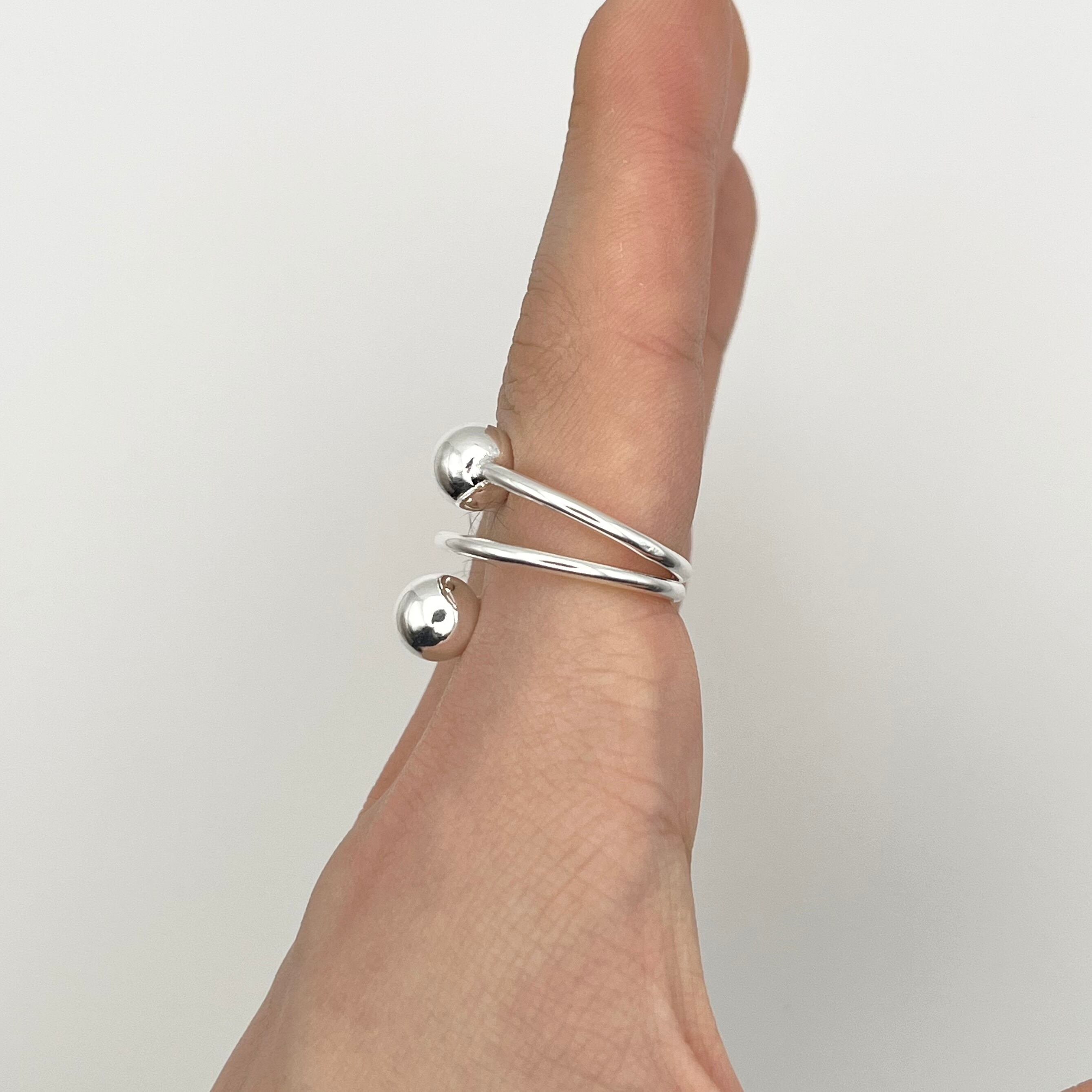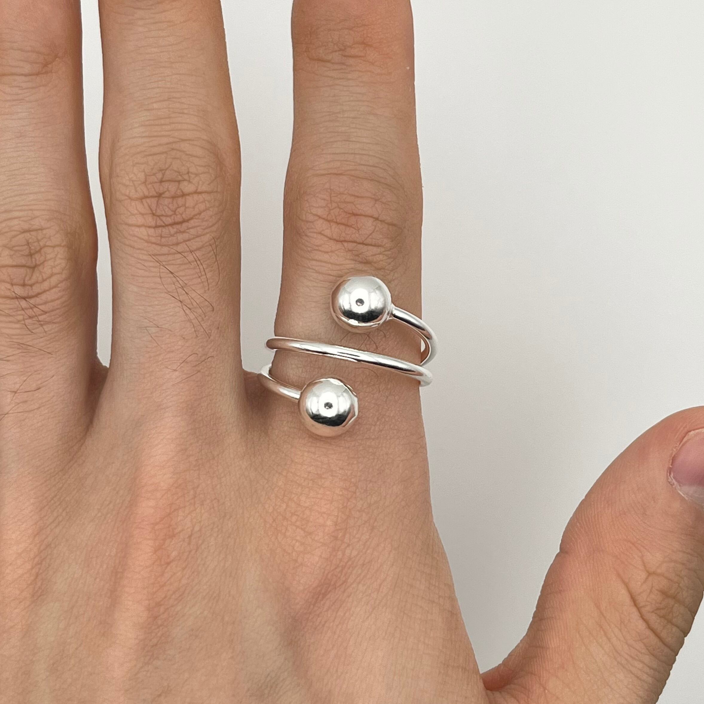 Double Ball Motif Modern Spiral Design Ring