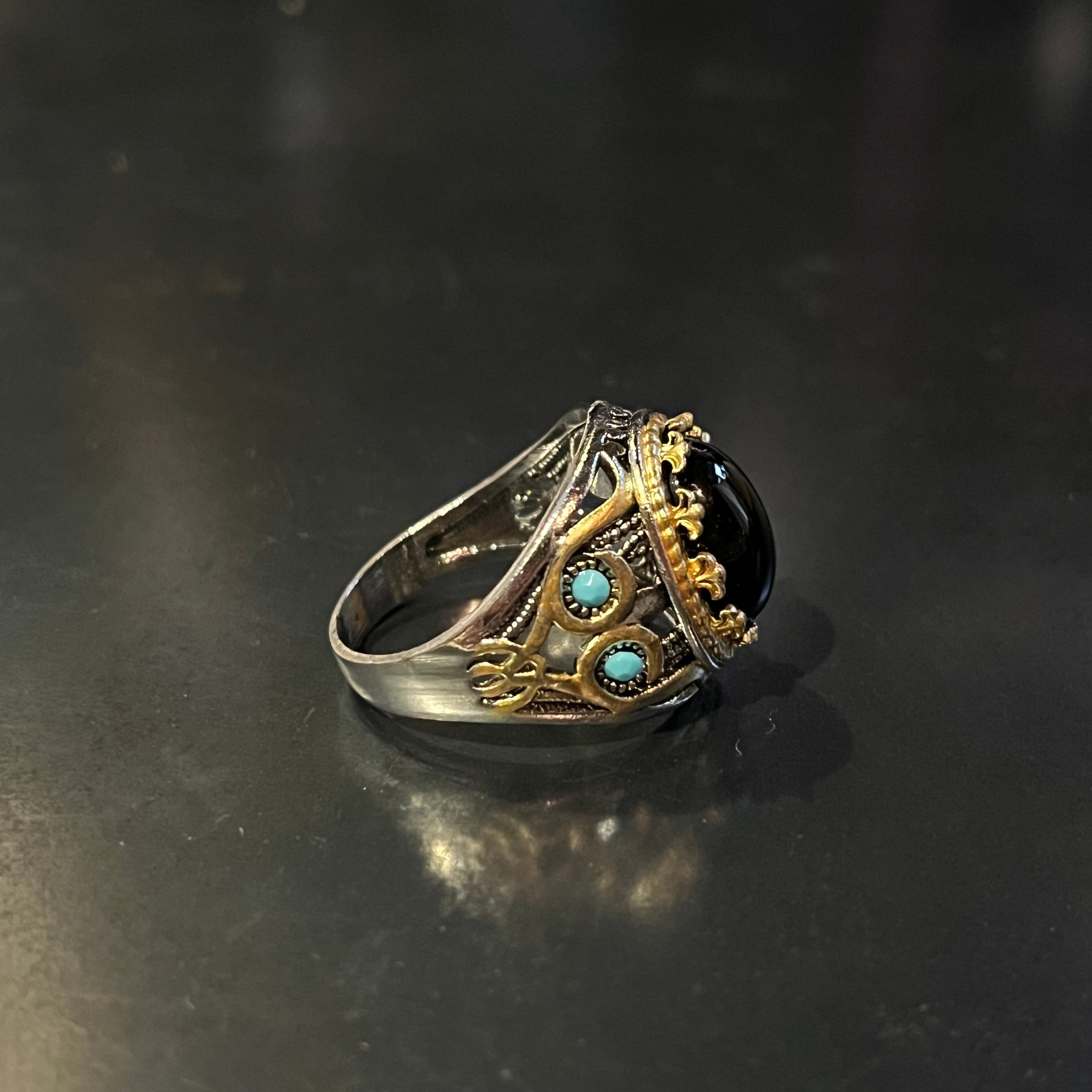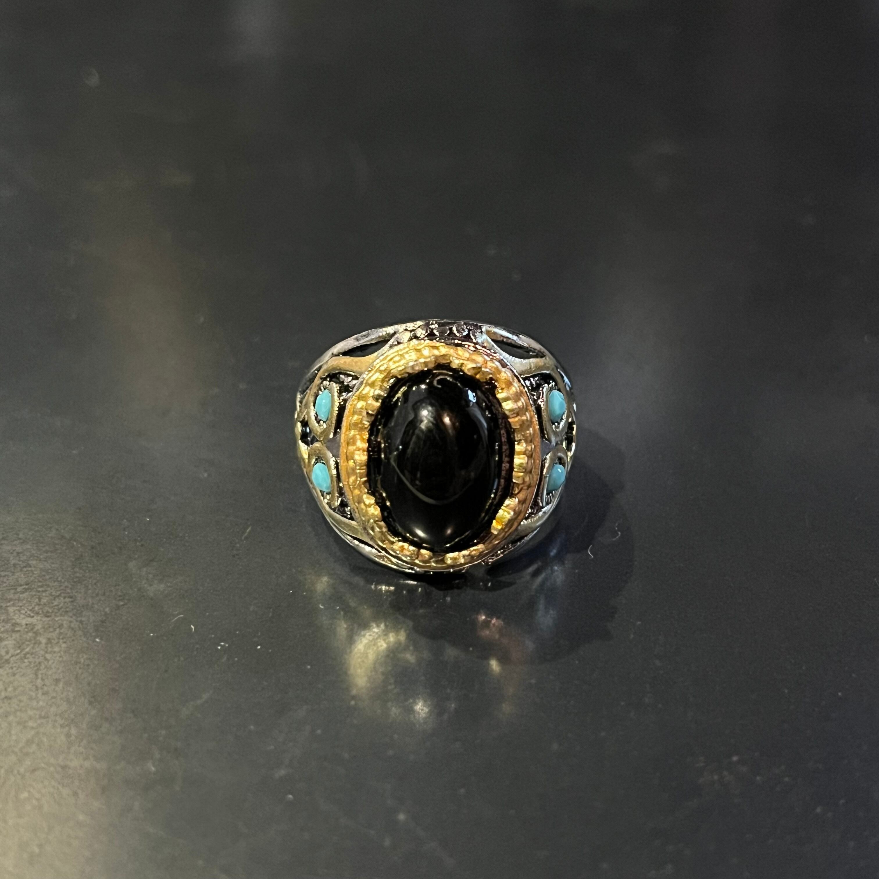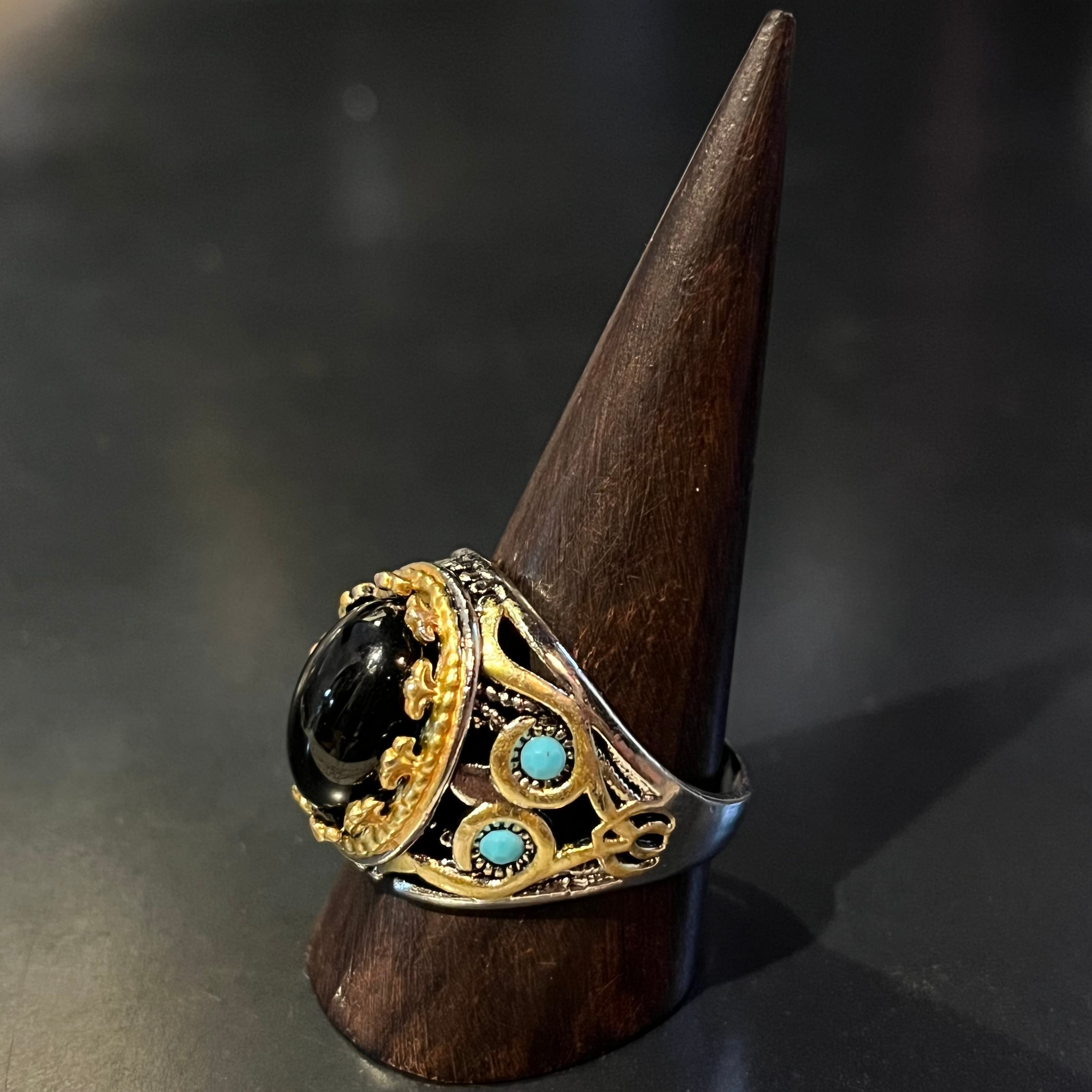 Onyx Black Colour Stone Tribal Design Ring