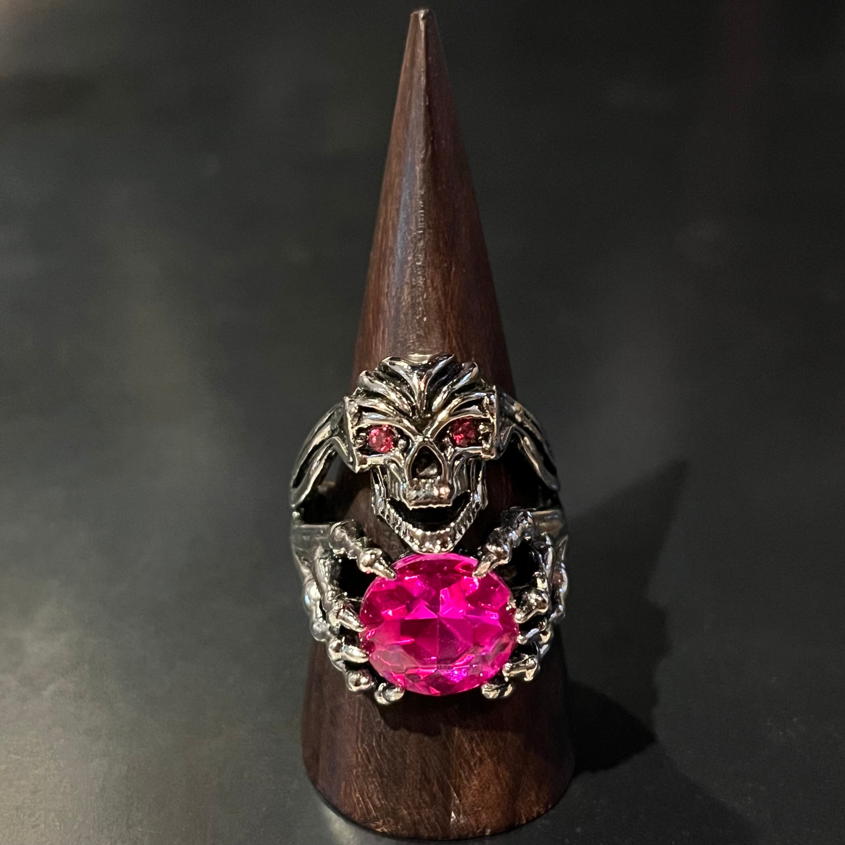 Pink Stone Motif Skull Design Ring