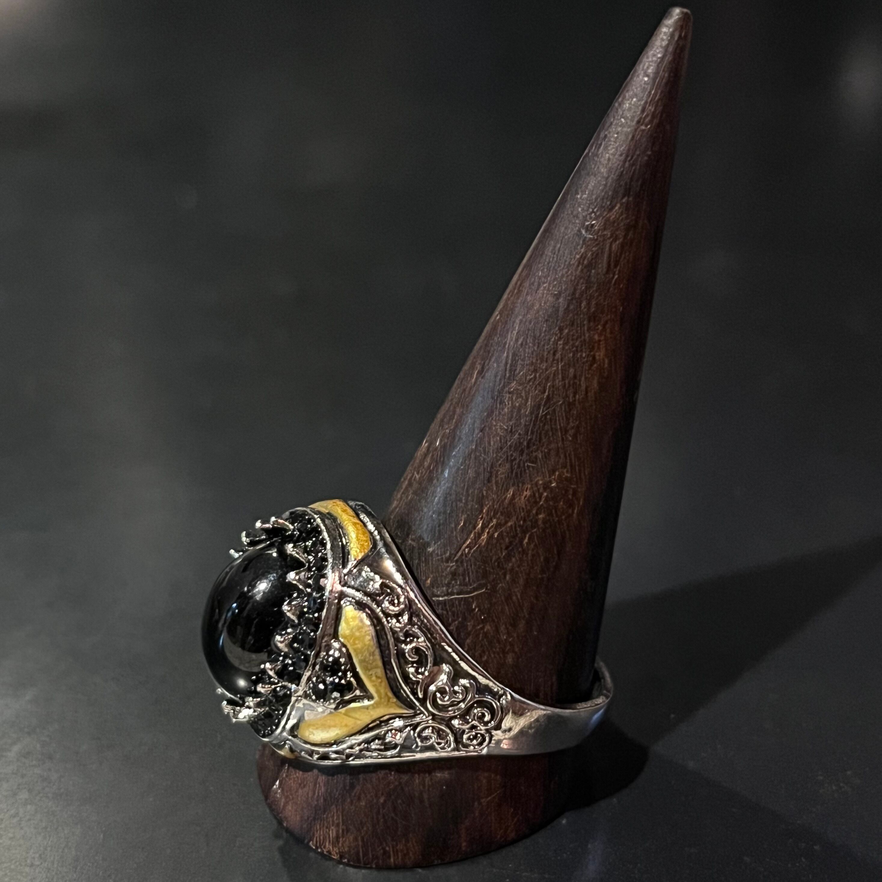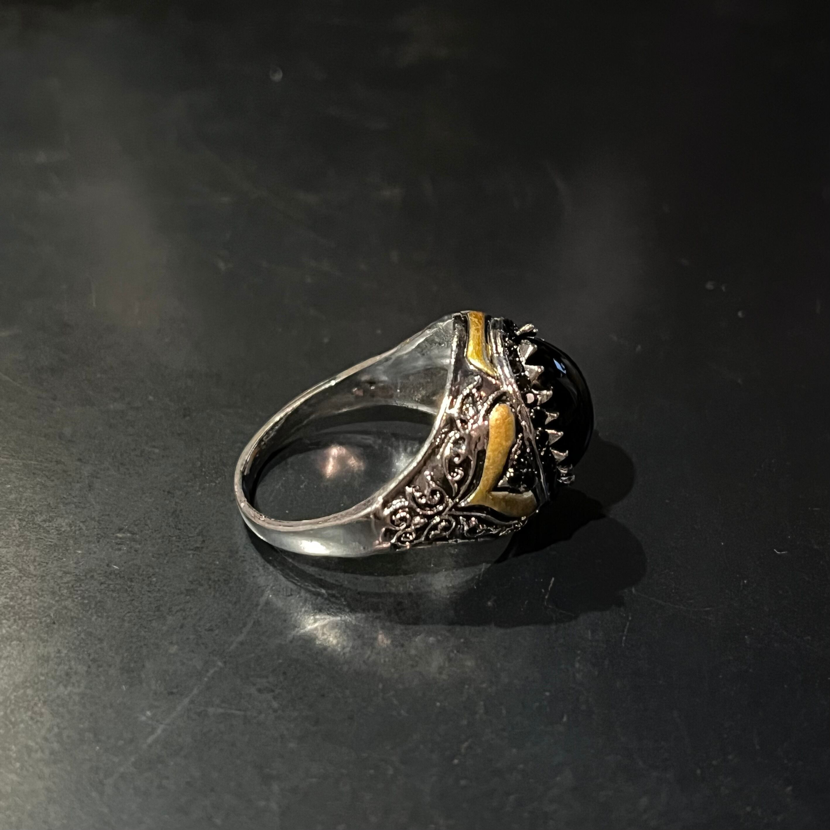 Onyx Black Colour Stone Motif Gold Tribal Design Ring