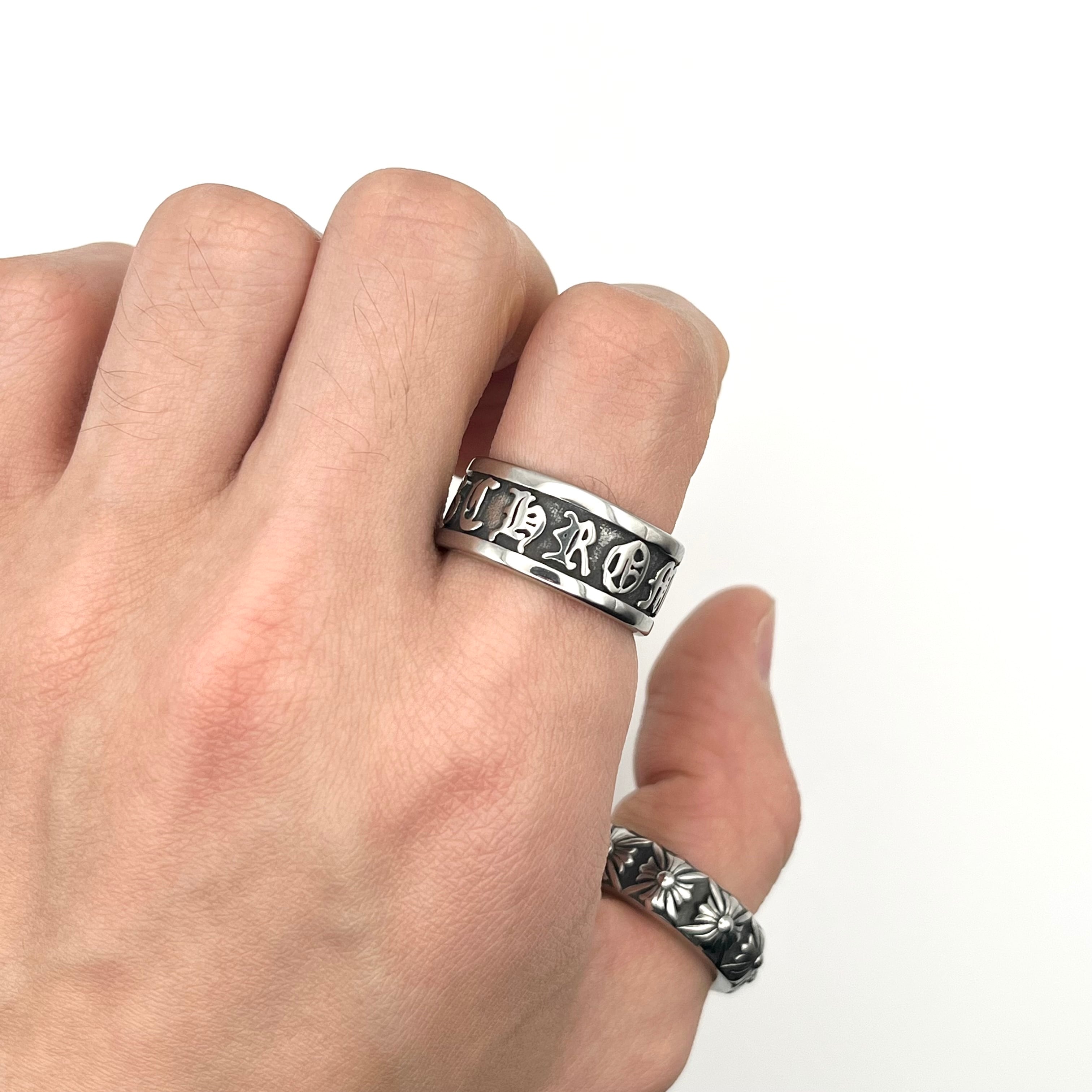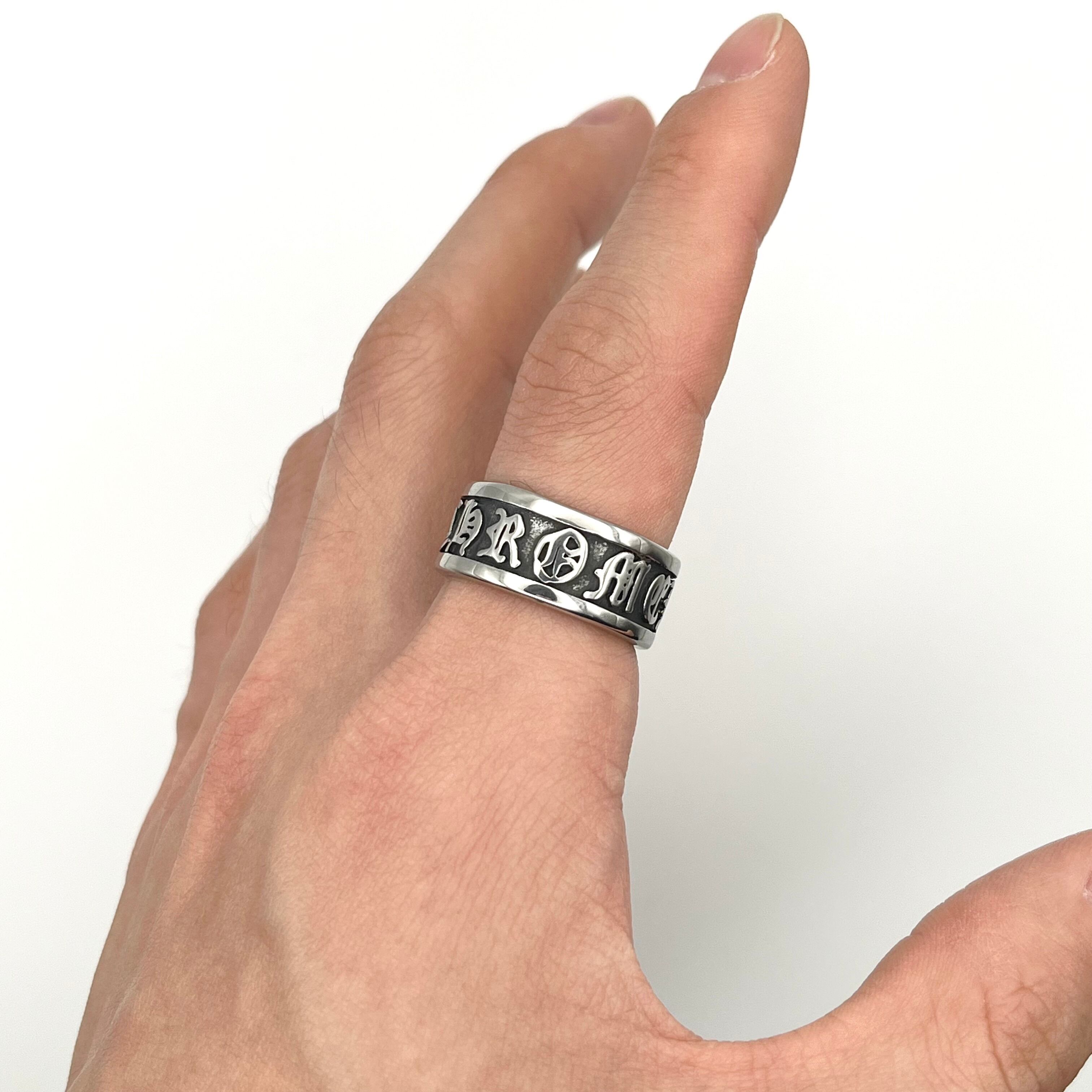 "Scroll Label" Engraved Letters Design Ring