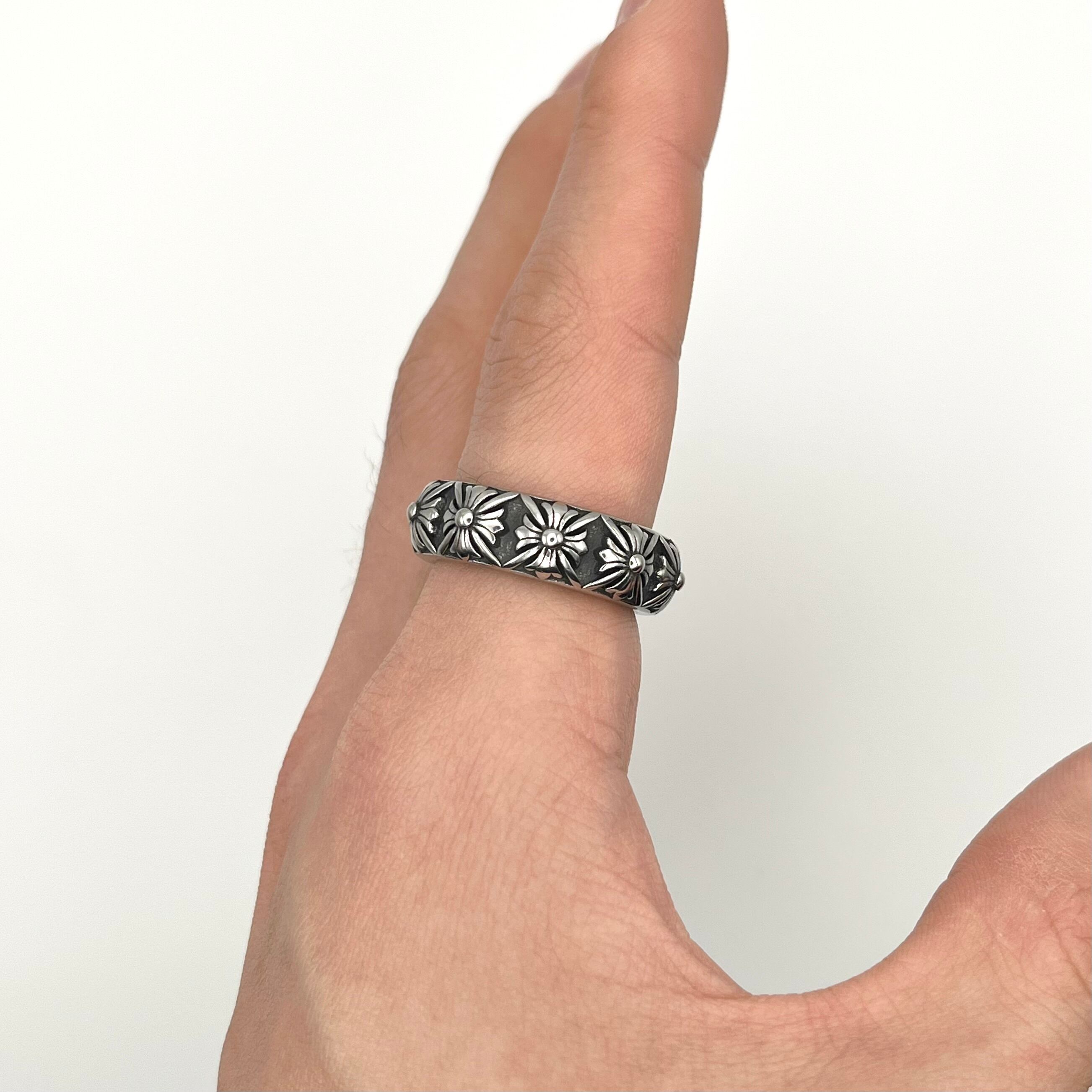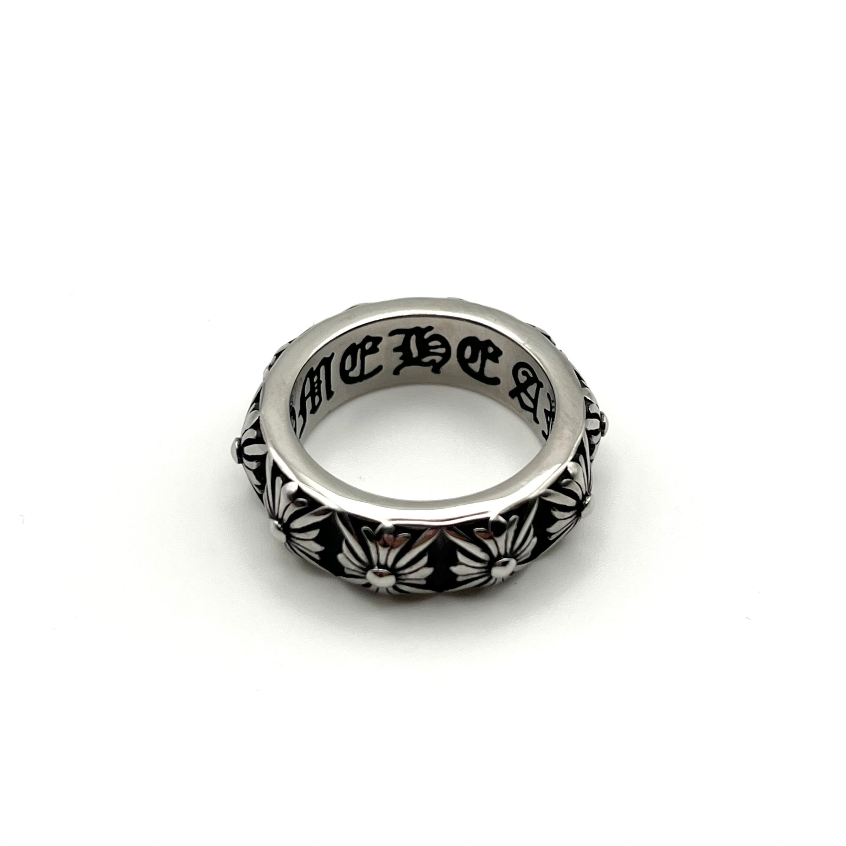 "Cross Flower" Motif Round Engraved Design Ring