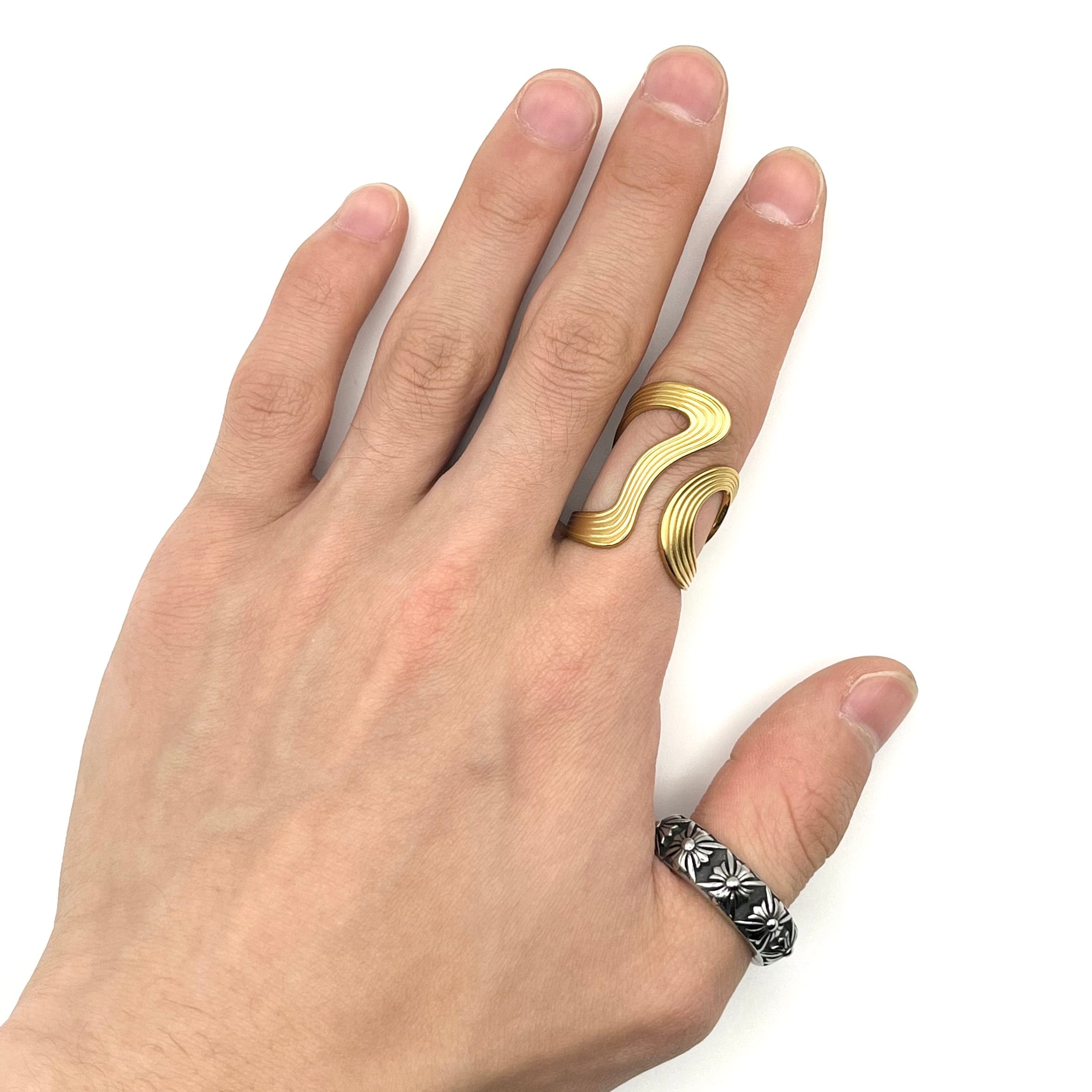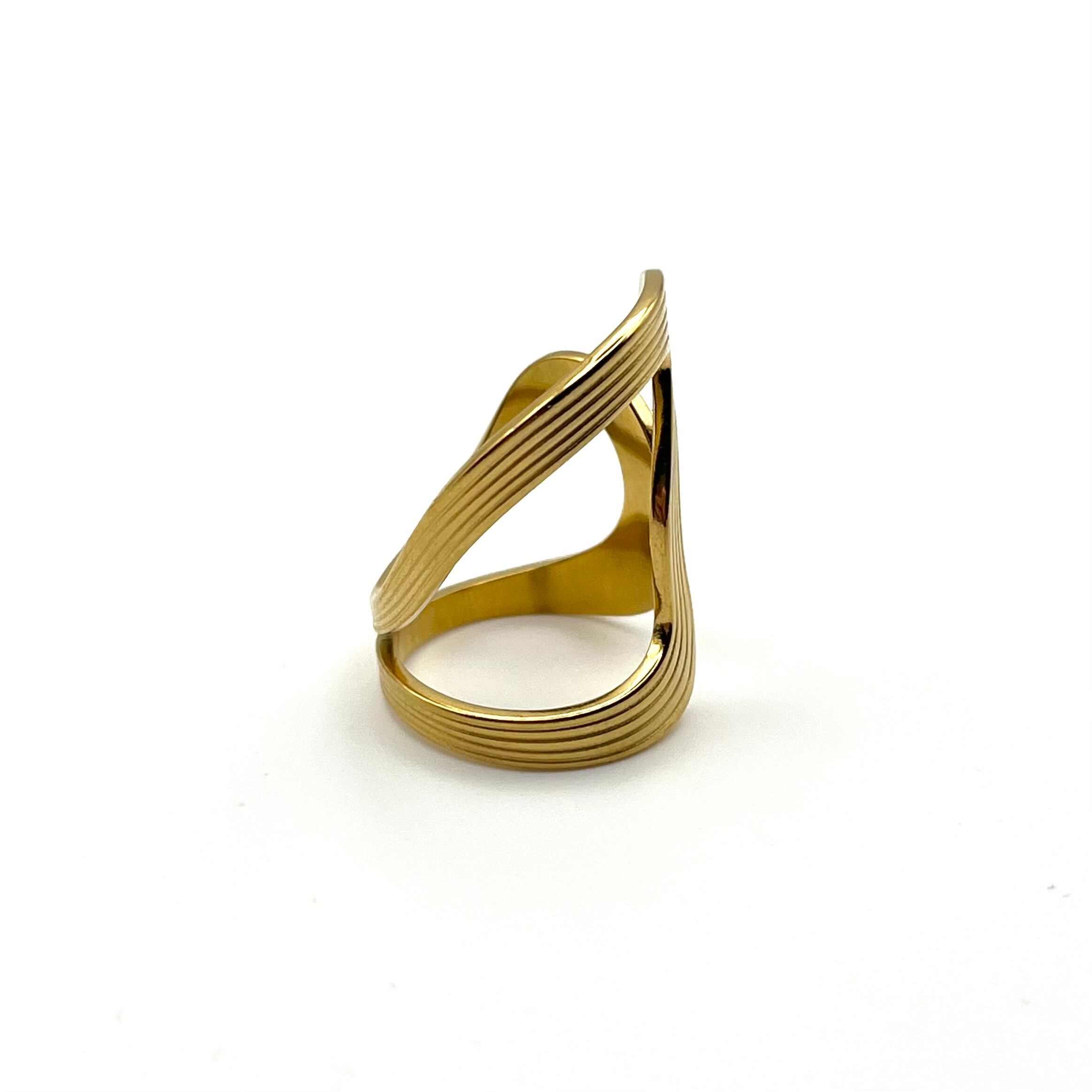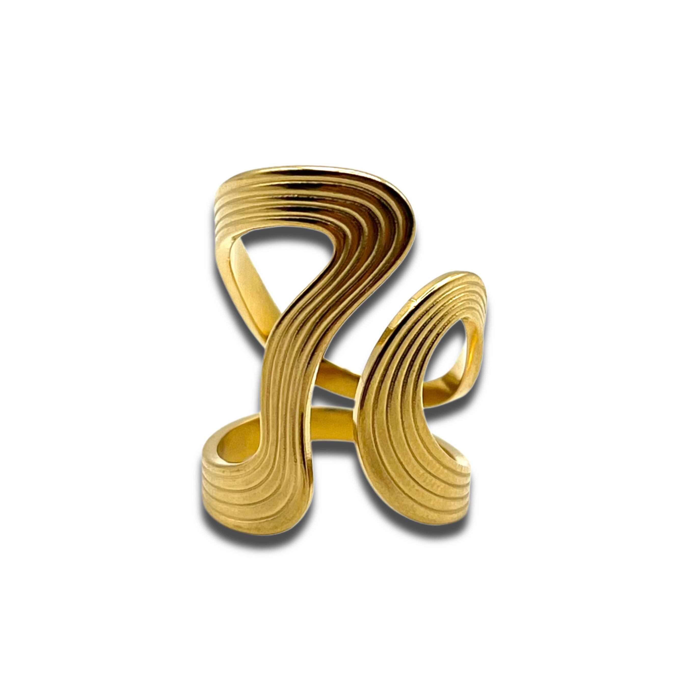 Gold Unique Wave Motif Design Ring