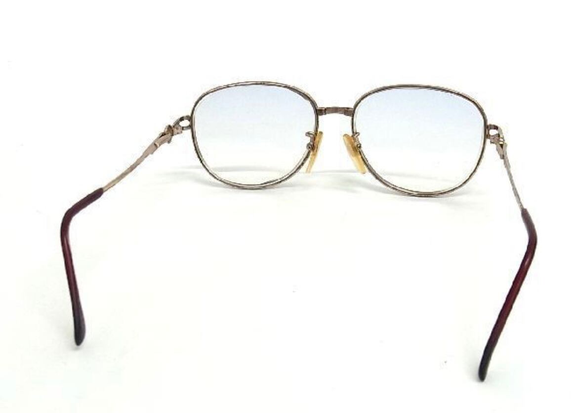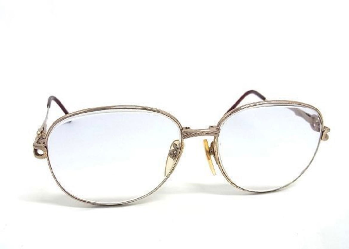 サイドのリング装飾と繊細な彫金デザインが目を引く、80年代〜90年代頃のヴィンテージフレームです。当時らしい華やかさと、クラシカルな気品を兼ね備えた個体で、現代の既製品にはない、工芸品のようなディテールが魅力です。レンズを入れ替えて伊達メガネや老眼鏡としてお使いいただくのはもちろん、コレクションや衣装用としてもおすすめの逸品です。