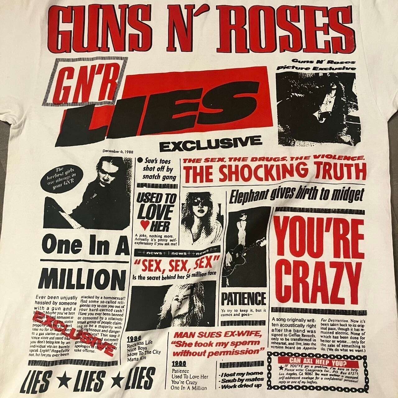 海外のユーズドショップで買い付けたガンズ・アンド・ローゼズのバンドTシャツのご紹介です。