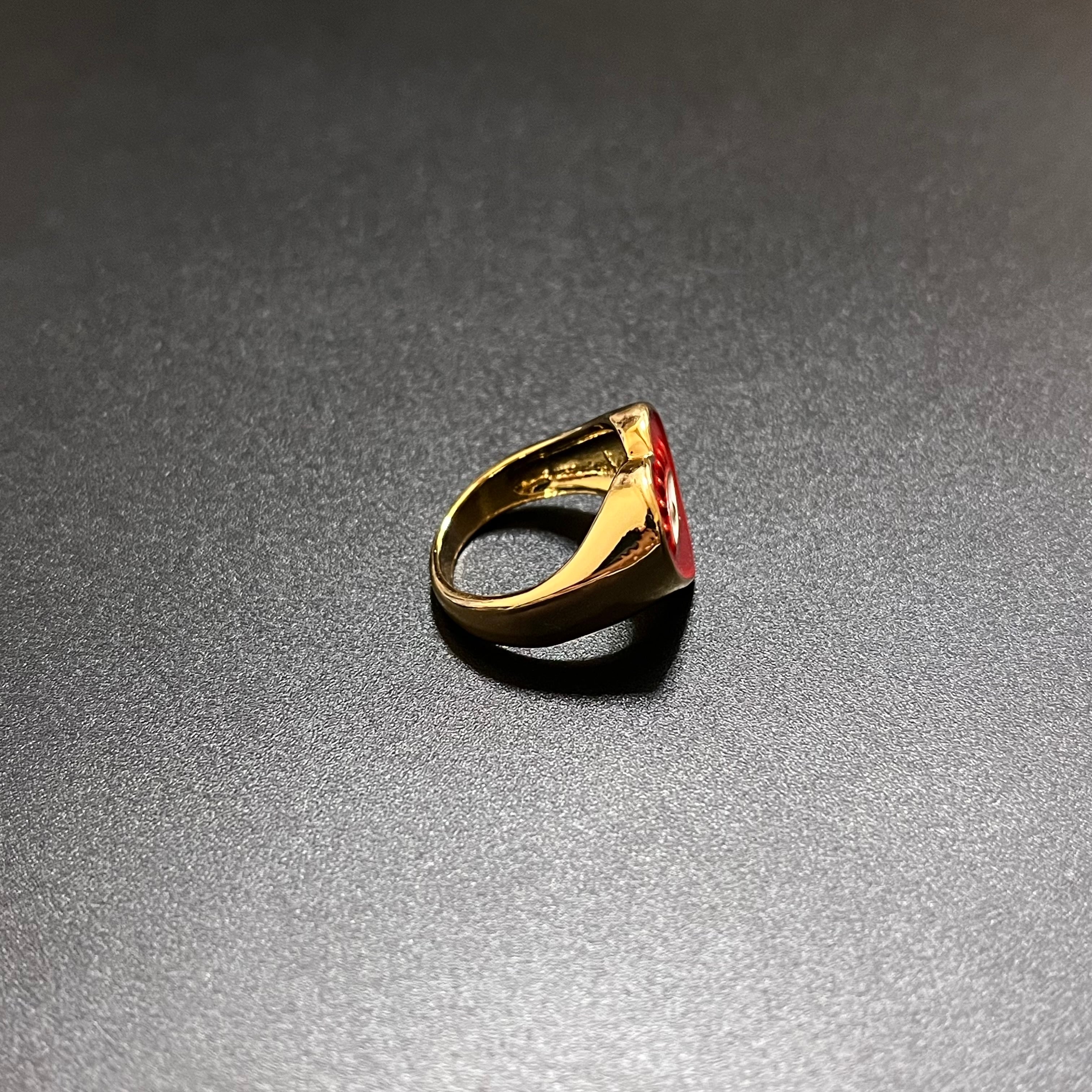 Red Heart Motif Eye Design Ring